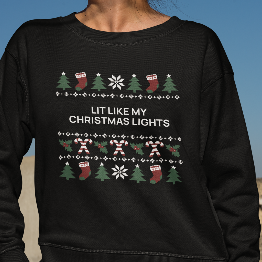 Gen Z Kerst Sweater Zwart Lit Like My Christmas Lights