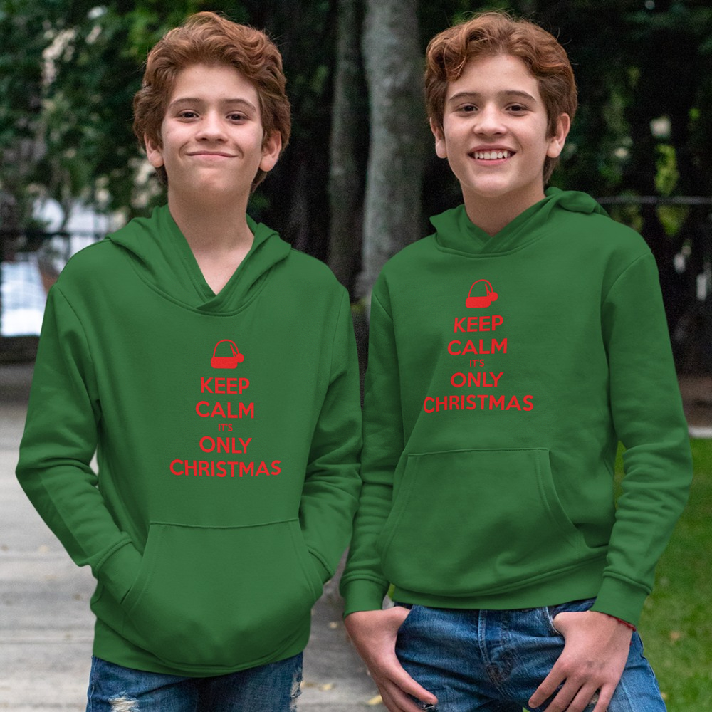 Deze donkergroene kerst hoodie met Keep Calm It's Only Christmas is speciaal voor kids gemaakt. Met deze unieke kerstkleding laat je een glimlach verschijnen op ieders gezicht. Draag deze kersttrui naar een kerstdiner of op een feestje rondom de kerstdagen. De hoodie is verkrijgbaar voor kinderen van 3 t/m 14 jaar.