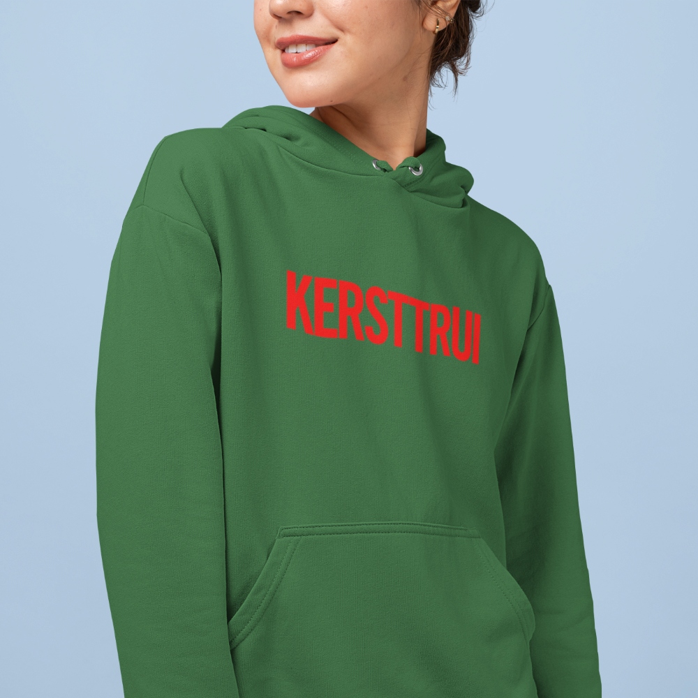 Deze kleurrijke premium kerst hoodie met de tekst Kersttrui op de borst is voor iedereen met goede dosis droge humor! De donkergroene capuchon sweater is heerlijk comfortabel en houdt je lekker warm tijdens de winterdagen. Het heeft een uniseks fit en is daarmee geschikt voor zowel dames als heren. Verkrijgbaar in de maten XS t/m 4XL.