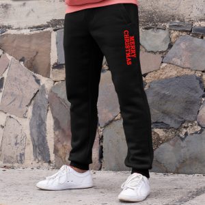 Deze zwarte Kerst joggingbroek met de tekst Merry Christmas is speciaal voor de feestdagen gemaakt! De joggingbroek is super comfortabel omdat het gemaakt is van 80% katoen en 20% polyester. Deze outfit is ideaal om in te chillen op de bank tijdens Kerstmis. De elastische taille met trekkoord en de getapete nekboord zorgen dat de broek altijd lekker rond de middel zit.