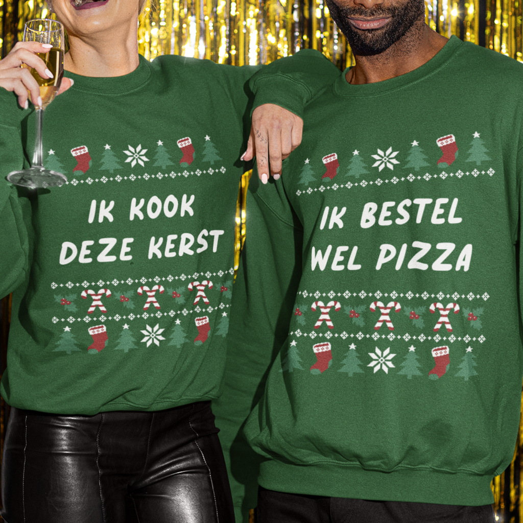 Vier kerst in stijl met onze stelletjes kersttruien! ? Trui 1: “Ik kook met kerst” – Voor de keukenheld van het gezin. Trui 2: “Ik bestel wel pizza” – Voor de echte feestdagenrebel. Waarom kiezen als je beide kunt hebben? Bestel snel en maak dit seizoen extra feestelijk! ? Ook verkrijgbaar met capuchon!