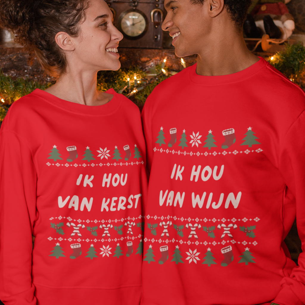 Vier kerst in stijl met onze stelletjes kersttruien! ? Trui 1: “Ik hou van kerst” – voor de ultieme kerstfan. Trui 2: “Ik hou van wijn” – voor de wijnliefhebber. Waarom kiezen als je beide kunt hebben? Bestel snel en maak dit seizoen extra feestelijk! ? Ook verkrijgbaar met capuchon!