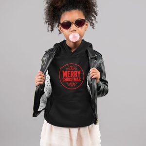 Zwarte Kerst Hoodie Kind Premium Merry Christmas Round