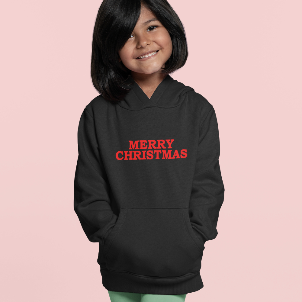 Zwarte Kerst Hoodie Kind Premium Merry Christmas