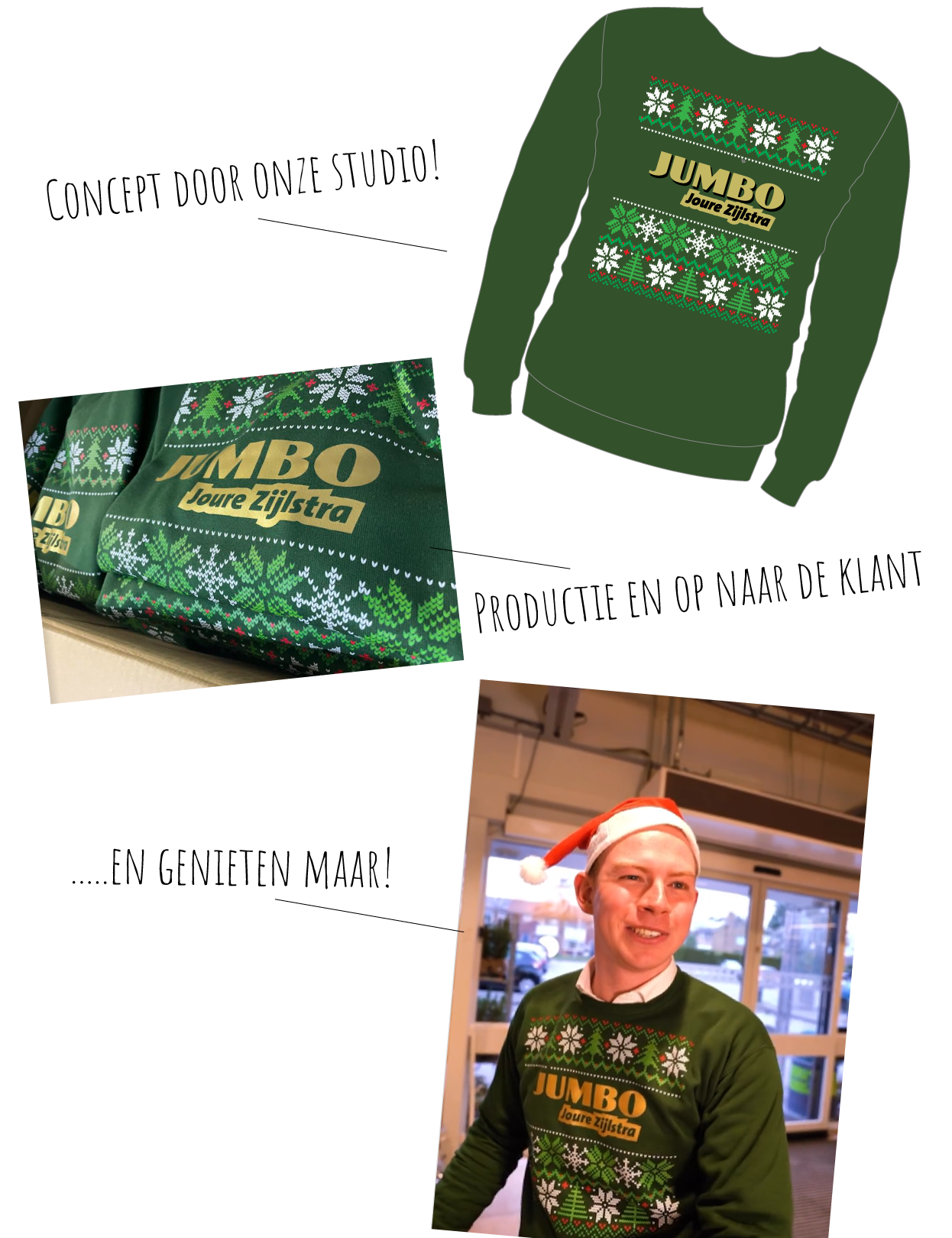 "Namens Jumbo Joure willen we Foutekerstsweater.nl bedanken voor de geweldige levering van onze kersttruien! 🎅 De truien zien er fantastisch uit, de prijs-kwaliteitverhouding is top en de service was snel en persoonlijk. Dankzij jullie zijn wij helemaal klaar om de feestdagen in stijl (en met een knipoog 😄) te vieren!"